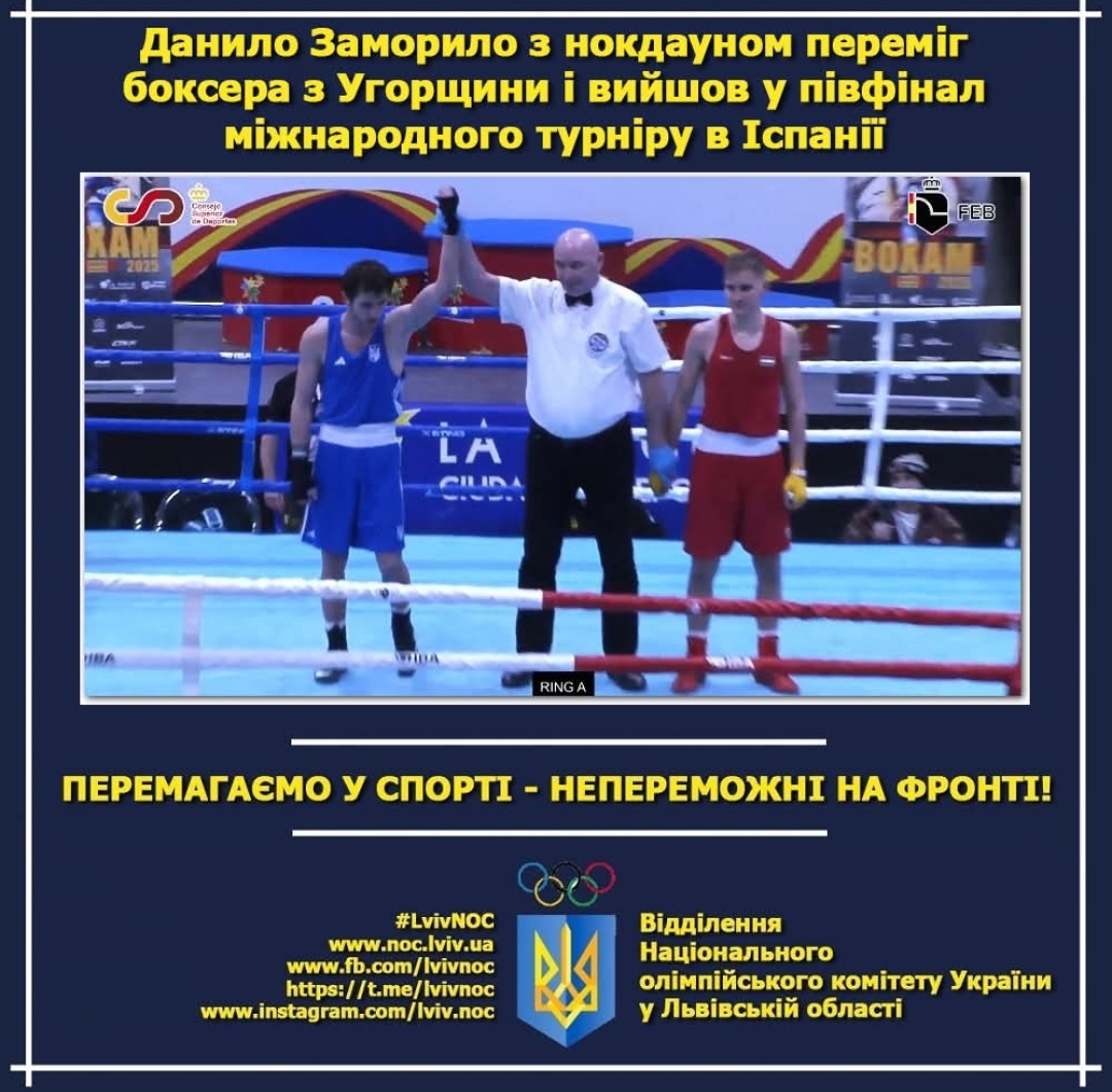 Сьогодні ввечері, 4 лютого, з впевненої перемоги стартував на Міжнародному турнірі з боксу BOXAM International Tournament 2025 серед чоловіків і жінок (категорія Elite) в місті Ла-Нусія, Іспанія, один із найперспективніших боксерів Львівщини, 23-річний Данило Заморило (до 63,5 кг).