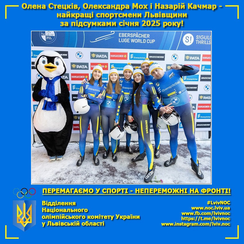 Представників санного спорту Олену Стецків, Олександру Мох і Назарія Качмара було обрано переможцями січня 2025 року на традиційному щомісячному голосуванні членів виконкому Відділення НОК України у Львівській області.